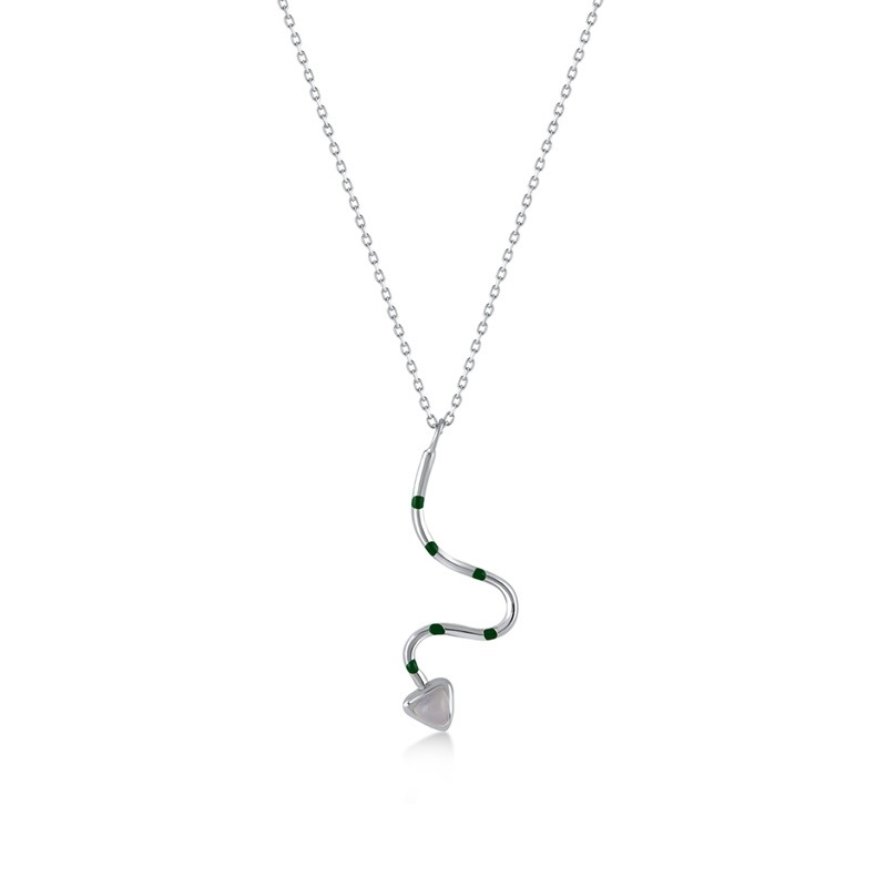 Green Enamel Silver Snake Necklace